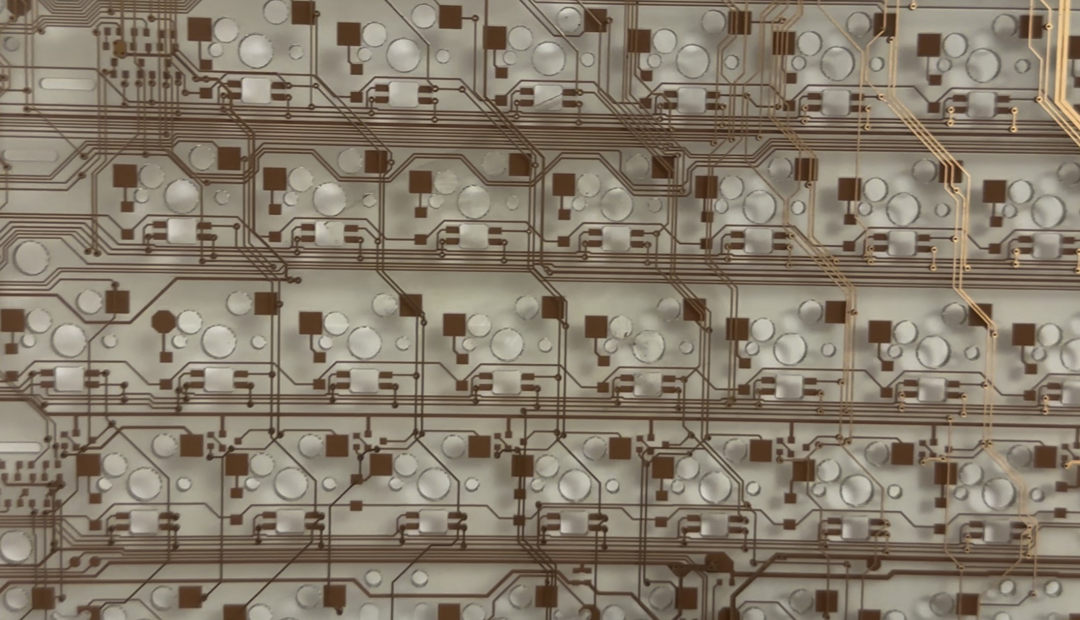 第二に、ガラス基板は回路接続を提供する。これには、電源、入力、出力などの信号接続が含まれる。この接続には、PCB基板と同様のプリント銅回路や、フォトリソグラフィープロセスに基づくTFTのような構造を用いることができる。中でもTFT構造は、理論線幅が非常に小さく、単結晶シリコン基板のcmos回路構造に匹敵するほどです。